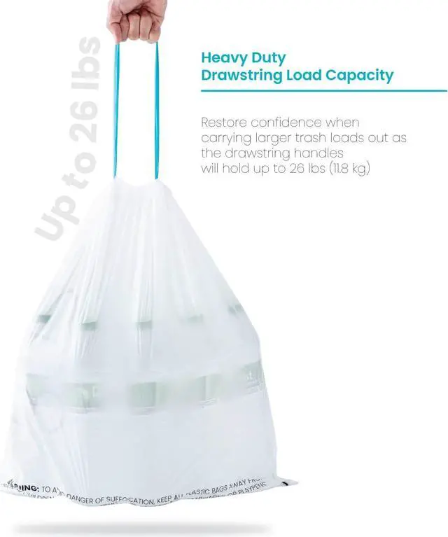 The Code 30S trash bag is designed to fit our 8 gallon bins and as well as standard 30 liter trash cans. Features drawstring handles that can hold weight up to 26lbs. and gives you the ability to smoothly tie and carry the trash bag. Constructed with double seams for extra sturdy strength to help prevent bag tears and leaks.