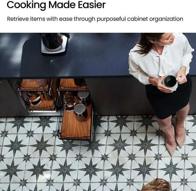 • Declutter Your Kitchen Cabinets, Maximize Storage Capacity 2 tiers of pull-out cabinet storage shelves for optimal organization and easy access for all your kitchen accessories.