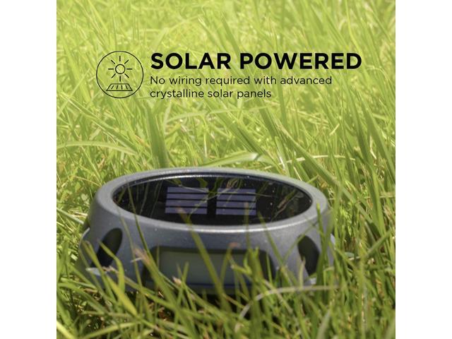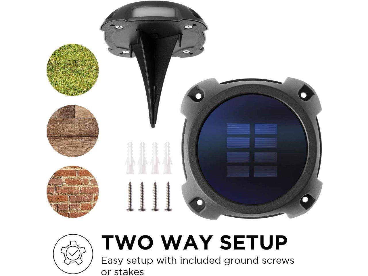 - MOUNT ANYWHERE: Quick and painless installation with no wiring required. Simply push the power button and mount using the included screws and anchors or install directly into landscape with the include ground stakes