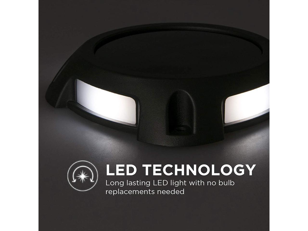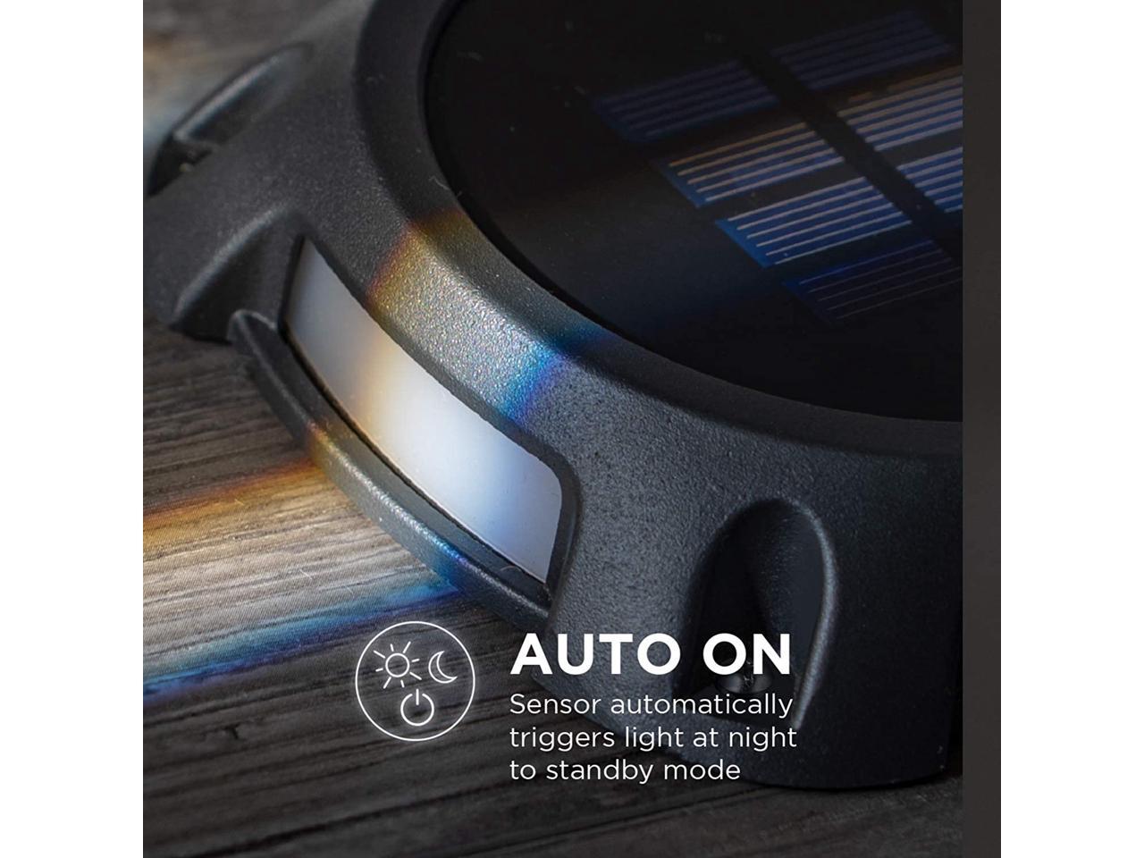 Home Zone Security Solar Deck Lights - Outdoor Weatherproof LED Deck Lights with Stakes and No Wiring Required, 4-Pack, Black, 1-Set (ELJ7307V)