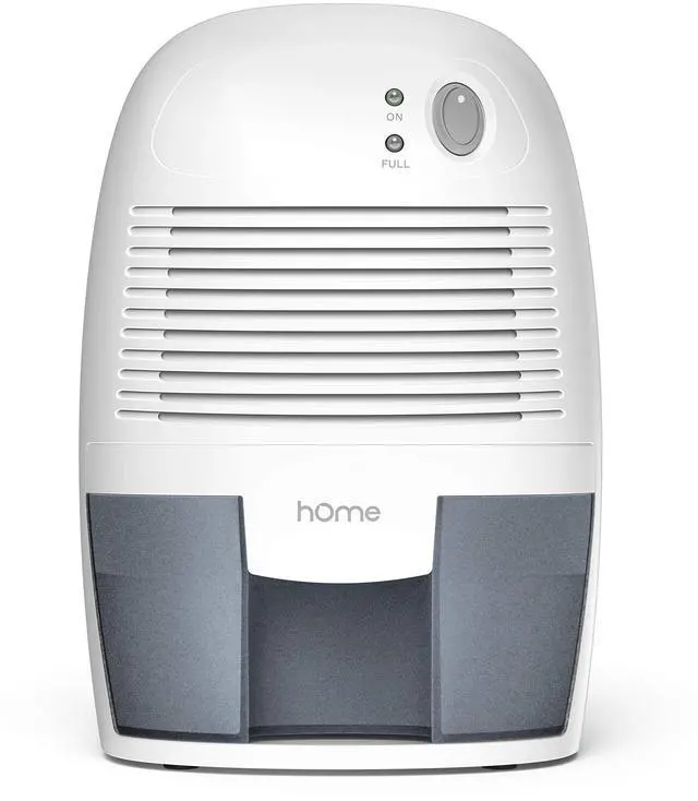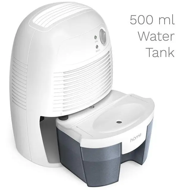 Small and compact dehumidifier with 16 ounce / 500 ml capacity tank extracts up to 9 ounces / 250 ml of moisture daily to purify air in enclosed and small rooms and spaces