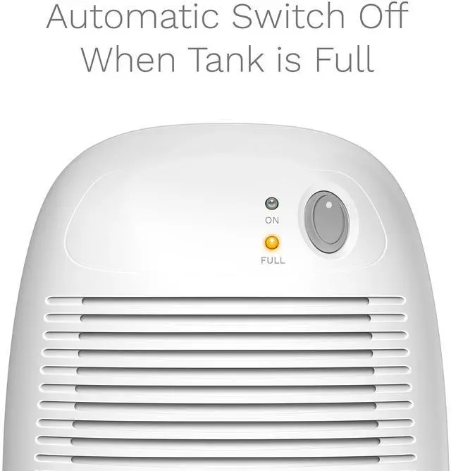 Quiet dehumidifier shuts off automatically and triggers LED indicator light when the tank is full and water is ready for removal - a convenient option for closets, bathrooms, showers, gun safes and more