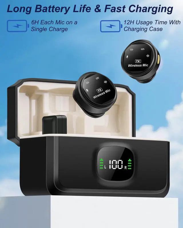 The long-lasting rechargeable battery provides up to 8 hours of continuous use, while the portable charging case ensures youre always ready for your next shoot. Lightweight and pocket-sized, it easily clips to your shirt, collar, or jacketperfect for mobile creators, educators, and journalists who need studio-quality sound anywhere.