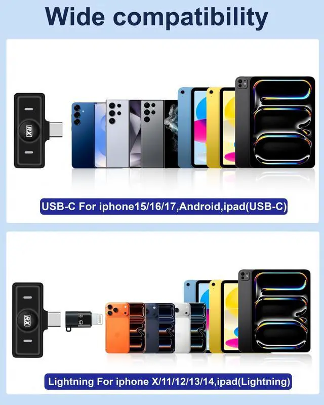 Compatible with iPhone, Android, USB-C, and Lightning devices, this wireless clip-on microphone offers broad device support without the hassle of cables or adapters. Whether youre capturing interviews, streaming live, or creating short videos, the HOMEPAC Wireless Lavalier Microphone ensures you always sound professional and confident in every recording.Christmas Gift This wireless clip-on microphone makes the perfect Christmas presentpractical, festive, and full of holiday cheer. Ideal for vloggers, students, teachers, creators, or anyone who loves capturing memories. Whether its Christmas-morning gift-opening, family dinners, snowy outdoor vlogs, or cozy holiday greetings, this mic keeps every warm moment crystal clear.