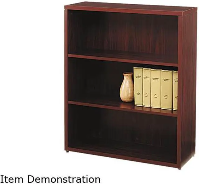 Dependable and durable laminate with style is perfect for the practical professional. No assembly required for quick and easy installation. Straight edges provide a streamlined look. Global Product Type - Bookcases-Shelf Bookcase Color - Mahogany Material(s) - Woodgrain Laminate Shelf Count - 3 Overall Height - 43 3/8 Overall Depth - 13 1/8 Overall Width - 36 Edge Detail Profile - Straight Edge Series Name - HON 10500 Series Compliance Standards - Level 2 Certified Compliance Standards - Meets or exceeds ANSI/BIFMA Standards Compliance Standards - SCS Indoor Advantage Gold Certified Pre-Consumer Recycled Content Percent - 69% Post-Consumer Recycled Content Percent - 3% Total Recycled Content Percent - 72%