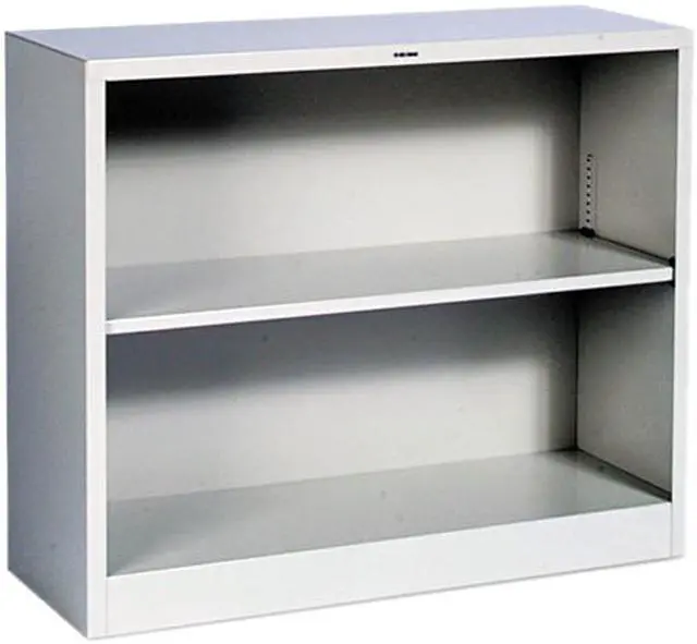 Eminently practical and useful steel bookcase offers long life with its heavy-duty construction. Heavy-gauge steel frame has a baked enamel finish over rust-inhibiting, phosphate pretreatment. Two shelves with generous depth hold plenty and are ideal for smaller spaces. Adjust the movable shelves in 1/2" increments to accommodate any size item. Light gray, two-shelf bookcase has 12-1/8" deep shelves, including the fixed bottom shelf. Each shelf holds up to 82 lb.