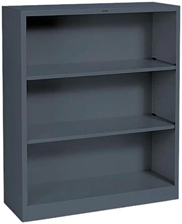 Eminently practical and useful steel bookcase offers long life with its heavy-duty construction. Heavy-gauge steel frame has a baked enamel finish over rust-inhibiting, phosphate pretreatment. Three shelves with generous depth hold plenty and are ideal for smaller spaces. Adjust the movable shelves in 1/2" increments to accommodate any size item. Charcoal gray, three-shelf bookcase has 12-1/8" deep shelves, including the fixed bottom shelf. Each shelf holds up to 82 lb.
