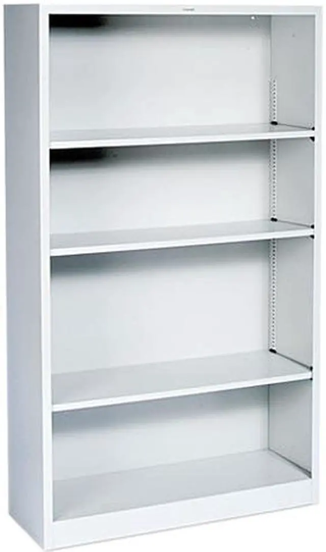 Eminently practical and useful steel bookcase offers long life with its heavy-duty construction. Heavy-gauge steel frame has a baked enamel finish over rust-inhibiting, phosphate pretreatment. Four shelves with generous depth hold plenty and are ideal for smaller spaces. Adjust the movable shelves in 1/2" increments to accommodate any size item. Light gray, four-shelf bookcase has 12-1/8" deep shelves, including the fixed bottom shelf. Each shelf holds up to 82 lb.