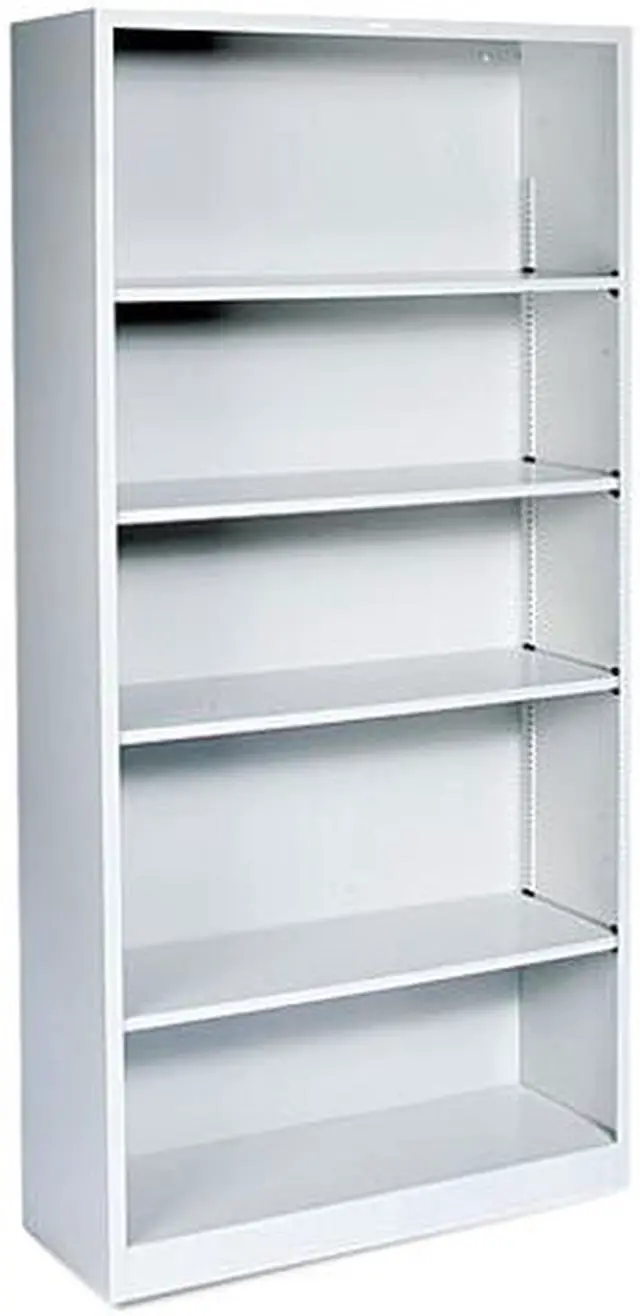 Eminently practical and useful steel bookcase offers long life with its heavy-duty construction. Heavy-gauge steel frame has a baked enamel finish over rust-inhibiting, phosphate pretreatment. Five shelves with generous depth hold plenty and are ideal for smaller spaces. Adjust the movable shelves in 1/2" increments to accommodate any size item. Light gray, five-shelf bookcase has 12-1/8" deep shelves, including the fixed bottom shelf. Each shelf holds up to 82 lb.