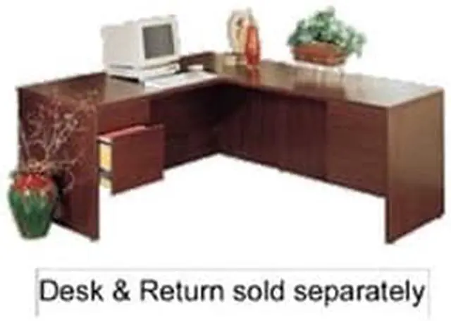 Well-built cost-effective wood furniture is the perfect solution for a growing business. Square edges and full modesty panels give this series a clean, streamlined look. Durable easy care thermal-fused laminate resists scratching and stains. Desks and credenzas feature one box and one file drawer in each pedestal. File drawers extend fully on long-lasting, steel ball-bearing suspensions and include hangrails for letter-size or legal-size storage. Curved left and right returns are for use with curved corner unit only and are not to be used as freestanding units. Curved corner unit is intended for curved returns only or can be used as separate freestanding unit. Desks, returns, bridges, and corner units offer grommets to route and hide wires and cables. Furniture is equipped with interchangeable core removable locks to make rekeying quick and easy and meets or exceeds ANSI/BIFMA and ISTA performance standards. Center drawer for desk is sold separately.