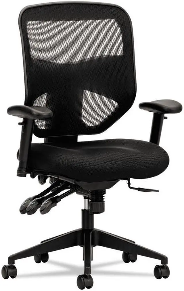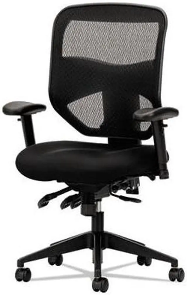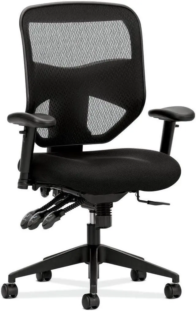 - Deeply contoured seat and back and adjustable arms provide outstanding all-day support for task work.