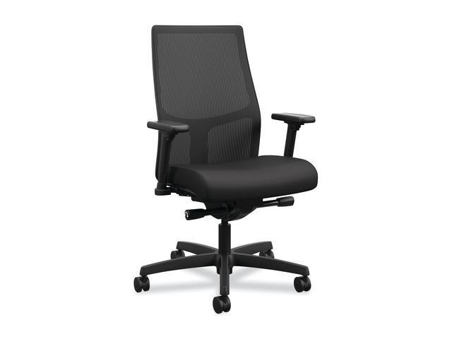 HON Ignition HIWMMKD Task Chair 2.0 - 4-Way Stretch Mid-Back Mesh Task Chair - Supports 300 lb - 17" to 21" Seat Height - Black Seat/Back Black Base HONI2M2AMNC10TK