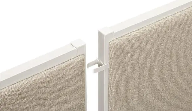 Includes top and bottom connector fittings as a pair. Connects two panels to create an extended wall. Simply snap on at the top & bottom of the panel and slide the panels together. Color(s): Gray; Quantity: 2/Pack.