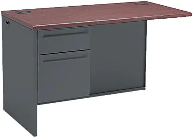 High-pressure laminate top is moisture-, scratch- and stain-resistant. Drawers operate on steel ball bearing slides. Tru-fit mitered drawers with a removable core lock. Cord management grommets and modesty panel. Not freestanding. Attach to single pedestal desk or L-workstation desk to create an L-workstation. Global Product Type - Returns Color - Mahogany/Charcoal Pedestal Count - 1 Drawer Configuration - Left: Box/File Overall Width - 48 Depth Maximum - 24 Overall Height - 29 1/2 Top Material - Steel-Reinforced High-Pressure Laminate Base Material - Metal Pedestal Types - 3/4-Height For Use With - HON 38000 Series Corner Unit, Single Pedestal Desk or L Workstation Desk Drawer Quantity - 2 Edge Detail Profile - Radius Edge Series Name - HON 38000 Series Compliance Standards - Level 2 Certified Compliance Standards - Meets or exceeds ANSI/BIFMA Standards Compliance Standards - SCS Indoor Advantage Certified Compliance Standards - SCS Indoor Advantage Gold Certified Pre-Consumer Recycled Content Percent - 30% Post-Consumer Recycled Content Percent - 17% Total Recycled Content Percent - 47% Disclaimer Statement - Attach to Single Pedestal Desk or L Workstation Desk to create an L workstation. Not freestanding. Attach to Corner Unit to create a corner workstation.