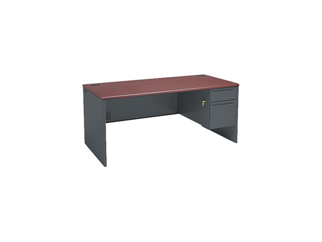 HON 38000 Series Right Pedestal Desk, 66w x 30d x 29-1/2h, Mahogany/Charcoal