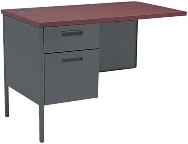 Durable finish on top helps resist damage. Full-suspension file drawer. Grommets for cable management. Modesty panel provides privacy. Flush drawer pulls. Not freestanding. Desk and Return sold and shipped separatelyORDER BOTH. Global Product Type - Returns Color - Mahogany/Charcoal Pedestal Count - 1 Drawer Configuration - Left: Box/File Overall Width - 42 Depth Maximum - 24 Overall Height - 29 1/2 Top Material - Laminate Base Material - Metal Pedestal Types - 3/4-Height For Use With - HON Metro Classic Series L Workstation Desk (Mahogany/Charcoal) Drawer Quantity - 2 Edge Detail Profile - Square Edge Series Name - HON Metro Classic Series Compliance Standards - Level 2 Certified Compliance Standards - Meets or exceeds ANSI/BIFMA Standards Compliance Standards - SCS Indoor Advantage Certified Compliance Standards - SCS Indoor Advantage Gold Certified Pre-Consumer Recycled Content Percent - 30% Post-Consumer Recycled Content Percent - 17% Total Recycled Content Percent - 47% Disclaimer Statement - Not freestanding. Desk and Return sold and shipped separatelyORDER BOTH.