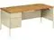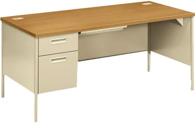 Durable laminate top resists marking. Painted monochromatic legs, flush end panels and drawer pulls. High-sided file drawer with full-extension triple-tied cradles and spring-loaded follower block; box drawer extends three-quarters on nylon rollers. Central locking center drawer with HON® "One Key" interchangeable lock cores. Worksurface grommets for cable management. Modesty panel provides privacy. Use alone or combine with Return to create an "L" workstation. Desk and Return sold and shipped separately--ORDER BOTH.