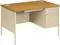 Durable, attractively finished laminated top delivers excellent scratch and stain resistance. Color-matched legs, panels drawers and handles tastefully contrast with the top. The high-sided file drawer features full-extension triple-tied cradles and a spring-loaded follower block, while the full-sized box drawer features three-quarter-length tracks and nylon rollers. Universal-lock center drawer allows you to secure all of your drawers with one key turn. Worksurface grommets simplify cable management. Flush side and modesty panels enhance privacy.