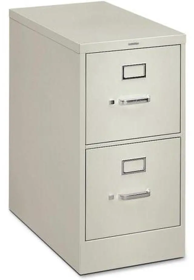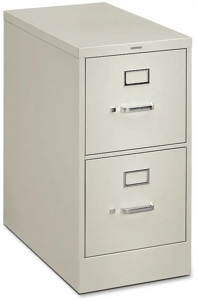 Vertical file offers commercial-grade quality with a 26-1/2" case depth and 25" front-to-back filing in each drawer. High drawer sides hold hanging file folders without use of hangrails. The lock secures all drawers. Adjustable-wire follower blocks keep files upright. Follower blocks have positive slide-action positioning that is adjustable on 5/8" centers. Drawer suspension offers triple-tied, full-cradle suspension with 10 nylon rollers per drawer. Design includes bright aluminum drawer pulls, label holders and a thumb latch. Vertical file has a baked enamel finish over rust-inhibiting, phosphate pretreatment. File is certified by SCS to be in compliance with specific, indoor, air-quality emission requirements and meets or exceeds ANSI/BIFMA and ISTA performance standards.