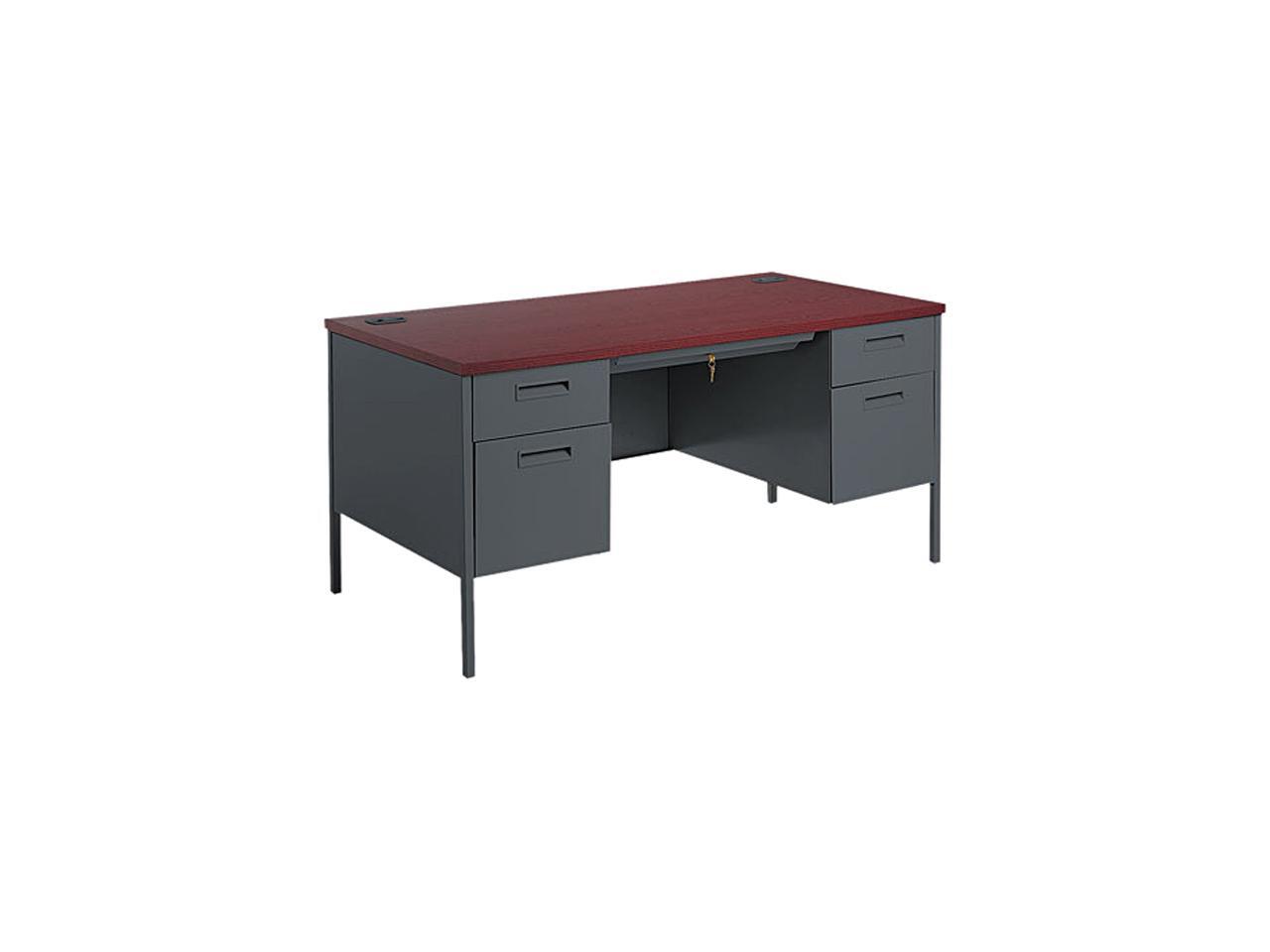 HON Metro Classic Double Pedestal Desk, 60w x 30d x 29-1/2h, Mahogany/Charcoal