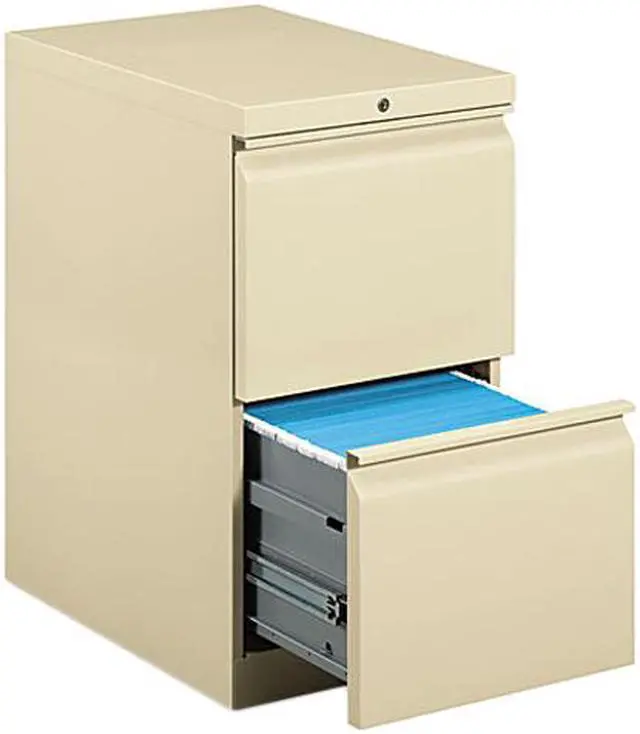 Heavy-duty pedestals with radius pulls to complement Brigade™ 800 Series Lateral Files. High sides for front-to-back letter size filing. Ball bearing suspensions on file drawer (90% extension) and box drawer (75%) extension. HON® "One Key" interchangeable lock core. Counterweight inhibits tipping when opening more than one drawer. Fixed front casters; swivel back casters. Fits under 29 1/2" high worksurfaces.