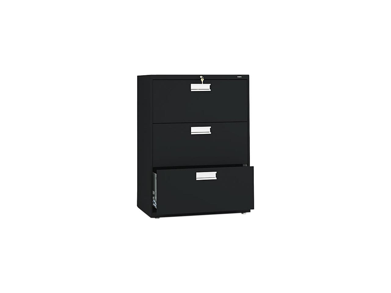 HON 673LP 600 Series Three-Drawer Lateral File, 30w x19-1/4d, Black
