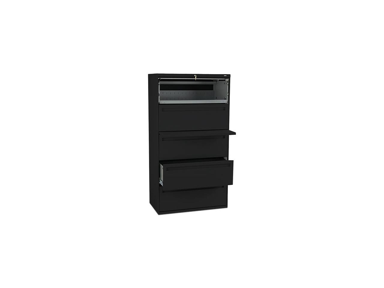 HON 785LP 700 Series Five-Drawer Lateral File With Roll-Out & Posting Shelf, Black