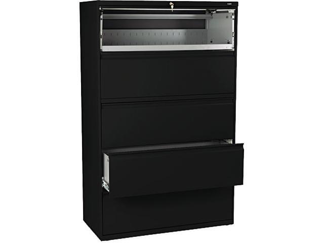 HON 895LP 800 Series Five-Drawer Lateral File, Roll-Out/Posting Shelves, 42w x 67h, Black