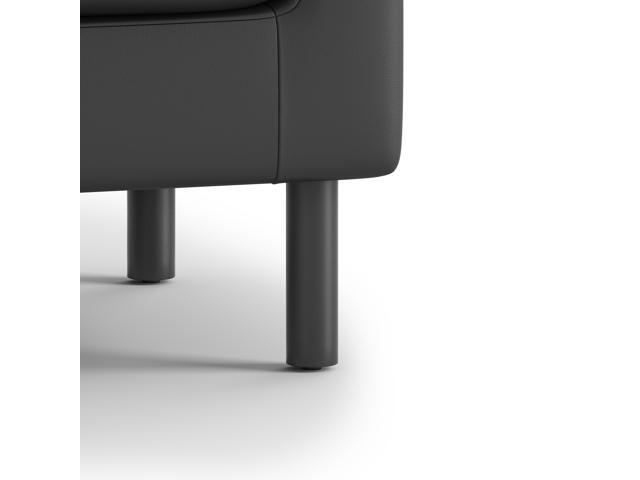 Upholstered in black polyurethane that is easy to clean and equipped with black metal legs for reliable support