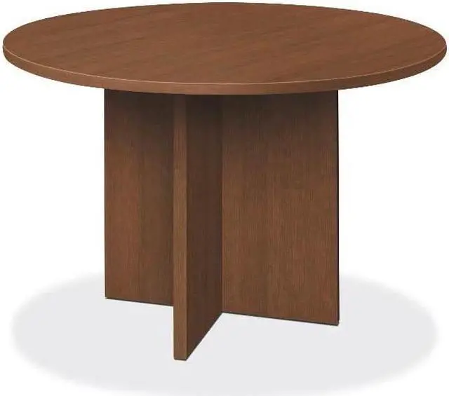 The HON Foundation collection allows you to create a premium workspace on a limited budget. This 48" diameter complete table comfortably seats up to five people. The base has adjustable leveling glides to compensate for uneven floors. Laminate color is Shaker Cherry. The HON Foundation collection allows you to create a premium workspace on a limited budget. This 48" diameter complete table comfortably seats up to five people. The base has adjustable leveling glides to compensate for uneven floors.