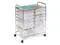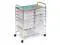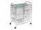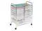 Perfect for the home, classroom, or art studio, this double wide organizer 12 easy-access drawers. Great for paper, tools, accessories, crafting, scrap booking, or your home office. The semi-transparent plastic drawers allow you to quickly identify contents. For both small and large items, this cart features drawer sizes of 9.5" x 13.5" in depths of 2.6" and 5.1" deep. Smooth glide casters make this cart easy to maneuver and lock in place for a sturdy work surface anywhere. The chrome work surface measures 23.25" W x 15.25" D and is a comfortable 29" off of the ground.