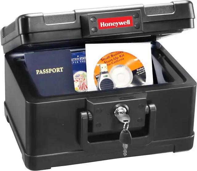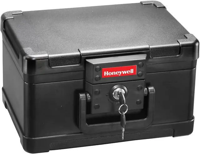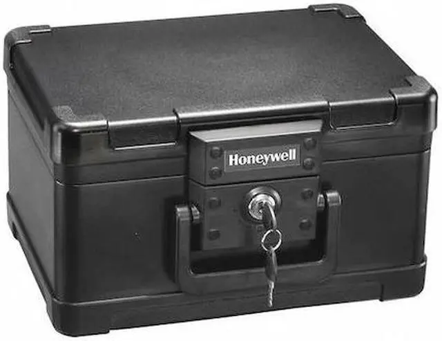Safe, Black, Net Weight 18.3 lb, Capacity 0.15 cu ft, Water Endurance Not Specified, Material Steel, Finish Powder Coated, Number of Shelves 1, Lock Style Key, Number of Bolts 0, Outside Height 7 1/4 in, Outside Width 12 3/8 in, Outside Depth 9 7/8 in, Inside Height 4 5/8 in, Inside Width 9 5/8 in, Inside Depth 6 in, Door Opening Height 7 3/8 in, Door Opening Width 12 1/2 in, Door Plate Thickness 4 in, Wall Thickness 3 1/2 in, Holds Digital Media, Documents, Includes (2) Keys, Max.