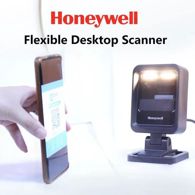Honeywell Genesis XP 7680G 1D/2D Barcode Scanner With Stand, 7680GSR-2USB-1-C, Adjustable Compact Brackets and Right Angle Cable Fous points, For Office, Factory, Supermaket,Anyplace,Black.
