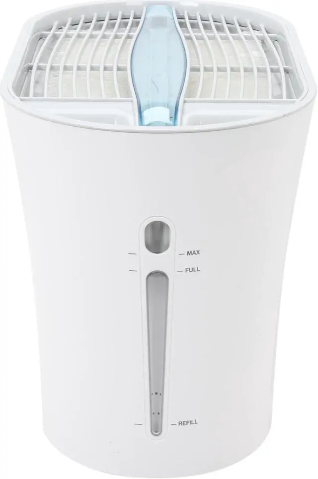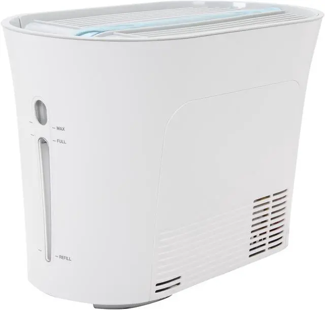 Humidifier's patented top-fill technology allows easy filling from above with a pitcher or water can. Eliminates trips back and forth to the sink with a heavy tank that has to be flipped over onto its base. Flowing water provides relaxing, soothing sound. Quietly runs 48 hours on one filling while manual controls provide simple operation with two settings. Removable dishwasher safe top grille and filter tray allow easy cleaning, while ProTec treated filter and water reservoirs help keep humidifier clean between cleanings. Comes with three year limited warranty. Replacement filter: HAC-700PDQ. Recommended for medium to large (850 - 1400 sq. ft.) rooms.