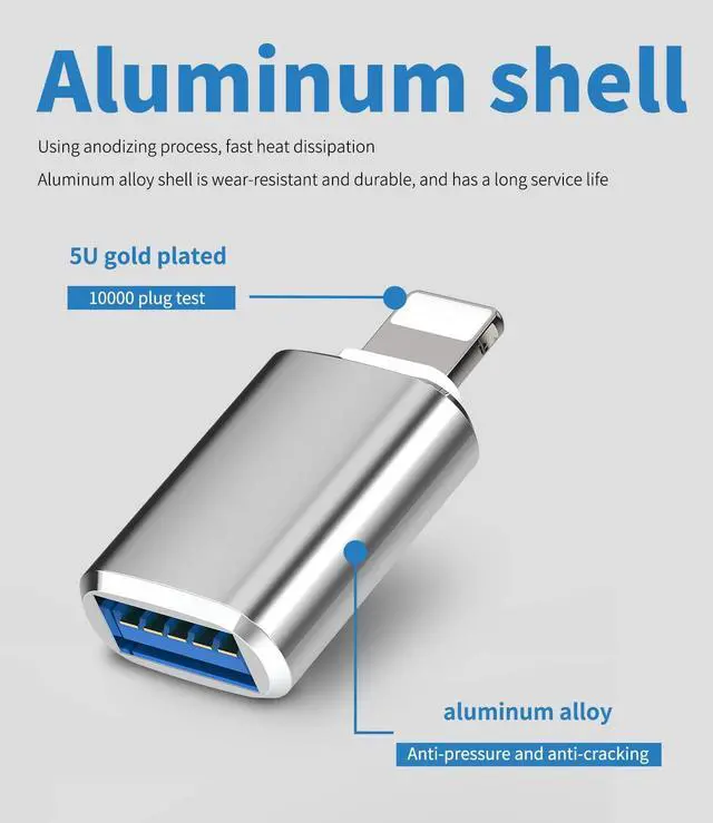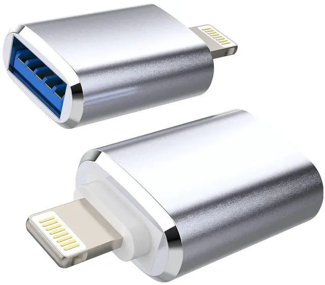 Lightning to USB Iphone OTG Adapter Dongle(2Pack)Camera Card Reader Keyboard Mouse Flash Drive Piano MIDI Hub Data Sync Converter for 11 12 13 14 Pro Max Mini Xr X Xs 7 8 Plus Ipad Air adaptador