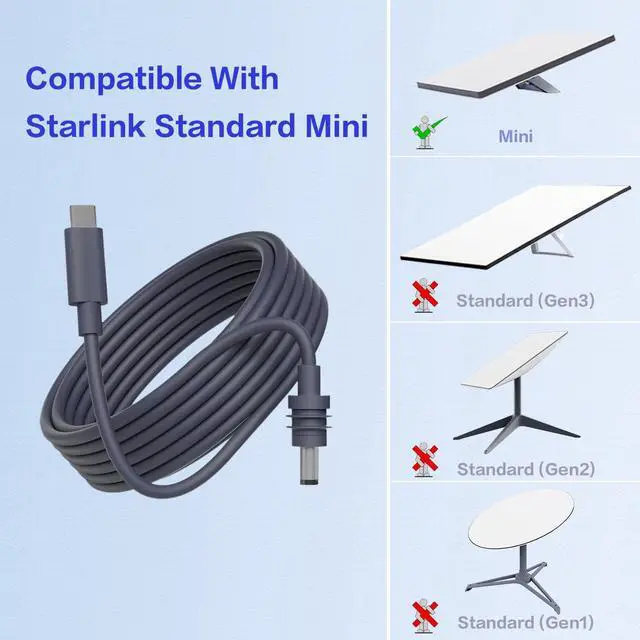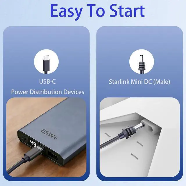 Starlink Mini Dedicated:This 3-meter (10-foot) USB-C to DC power cable features a built-in PD smart chip, seamlessly adapts to 65W and above power banks or PD chargers, provides a stable 20V output, and ensures your Starlink Mini stays connected anywhere.