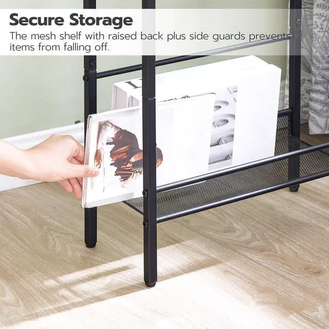 The sturdy metal mesh shelf provides a stable and secure space for important items.