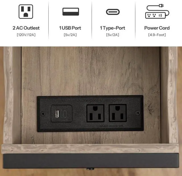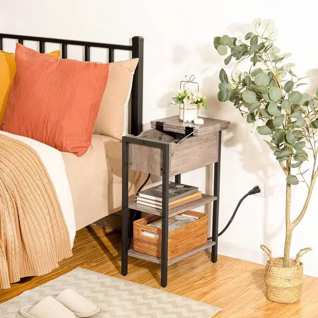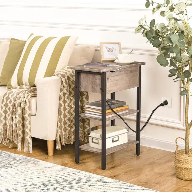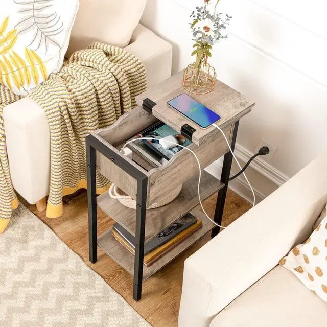 - A side table with charging station is missing in the living room to place some snacks, magazines, and more? Is the nightstand in the bedroom always insufficient? Putting it in the living room to serve as a side table with drawer, you’ll have not only a private storage space, but also opening spaces where you can put magazine, remote control, and more inside conveniently.