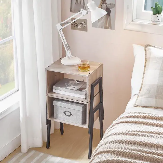 You can place it flexibly beside the bed or sofa, or stack it to create a 3-tier storage area. The open shelving keeps items within easy reach.