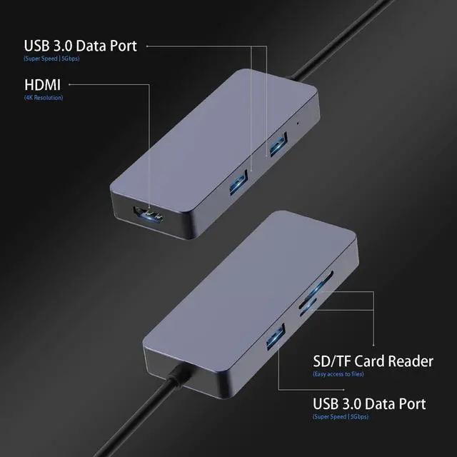 - 6 in 1 USB C Adapter: Qhou 6 in 1 USB-C adapter has 1 x HDMI port, 3 x USB 3.0 ports, 1 x SD/TF card reader. This allows you to easily connect other devices to your computer, laptop or tablet.