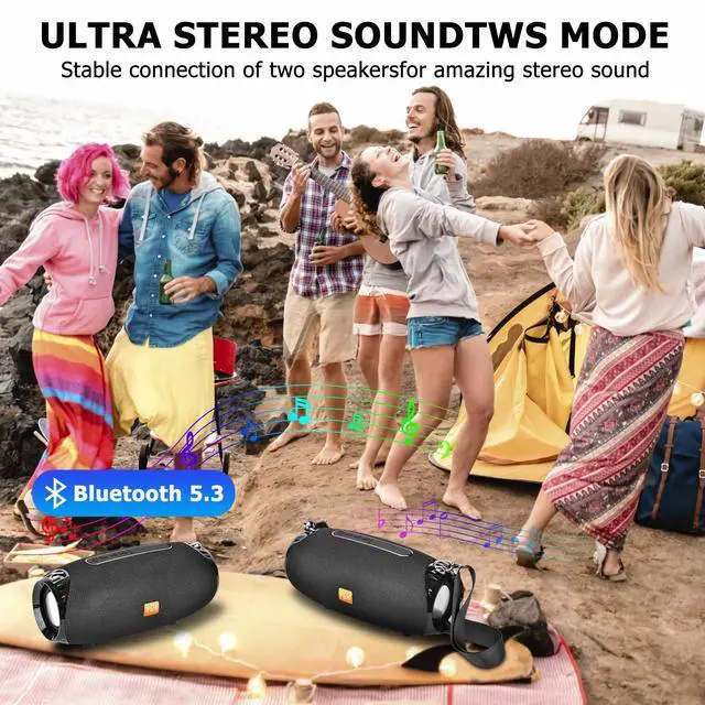 Outdoor Portable Bluetooth Speaker, IPX4 Waterproof Wireless Speakers, 5.0 Bluetooth Speakers, Powerful Sound, TWS Stereo Pairing Support TF Card, for Home/Party/Outdoor/Beach Black