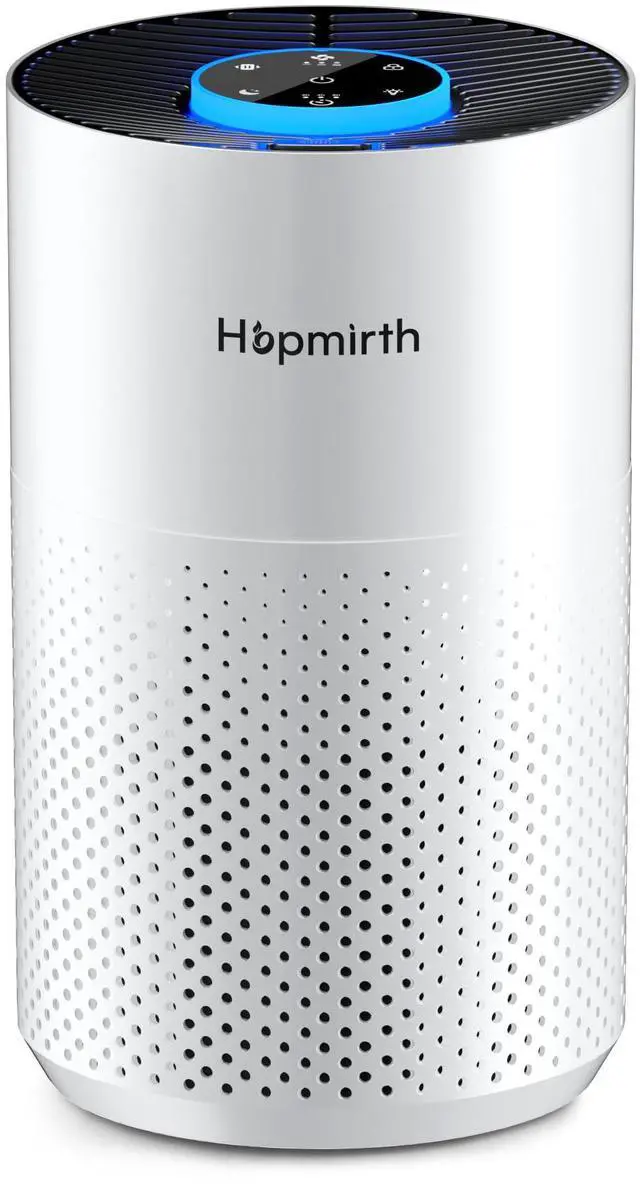 Ultra-Quiet Sleep Mode 24dB Hopmirth H14 air purifier for bedrooms offers restful nights with whisper-quiet 24dB operation. Sleep mode lowers fan speed and dims indicator lights, creating a peaceful and comfortable sleep environment while maintaining efficient air cleaning. Features 3 adjustable light modes to match your environment for a soothing experience.