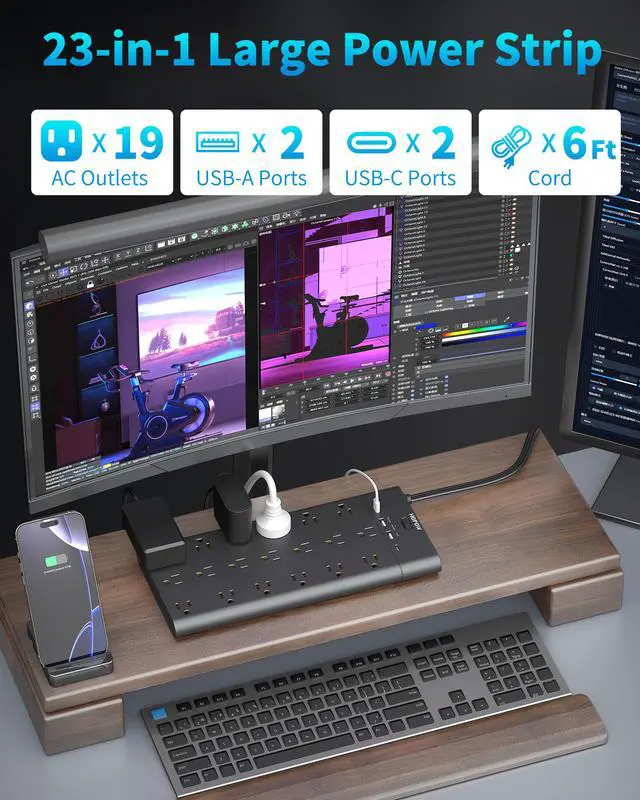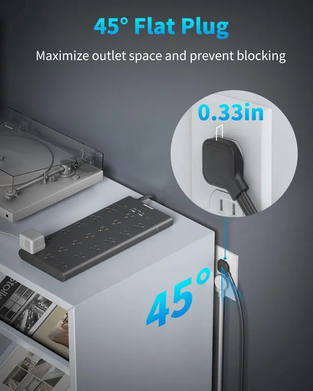 Made of fire-proof PC material, our power strip's shell can withstand temperatures up to 1382°F (750°C), which maximizes safety performance.