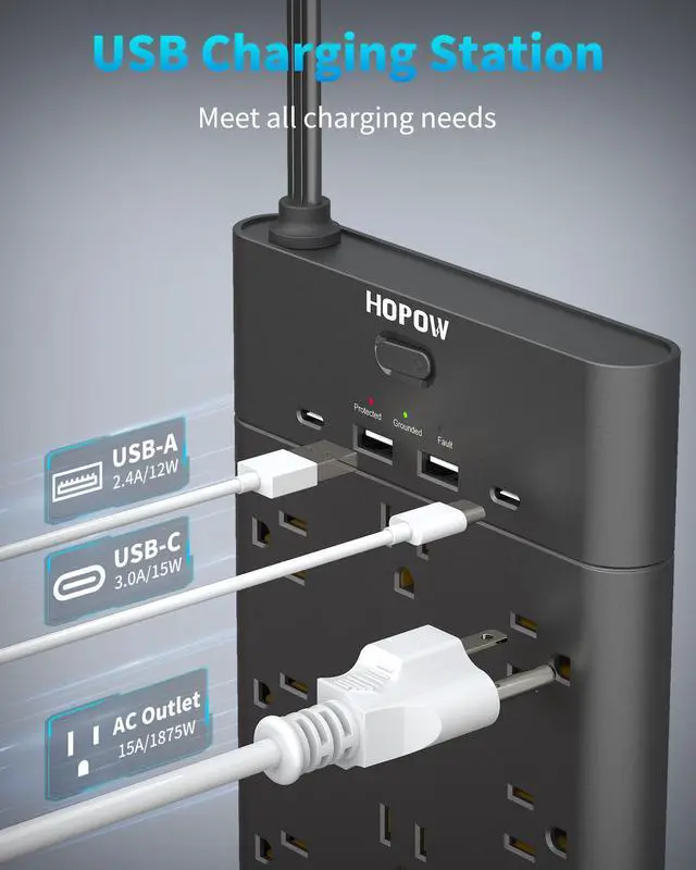 This grounded surge protector has multiple protections, like overload/short-circuit/USB over-voltage/USB over-current/USB over-heat protection, which help to keep your expensive electronics, appliances, or equipment like TV, computer, and home entertainment system from harm.
