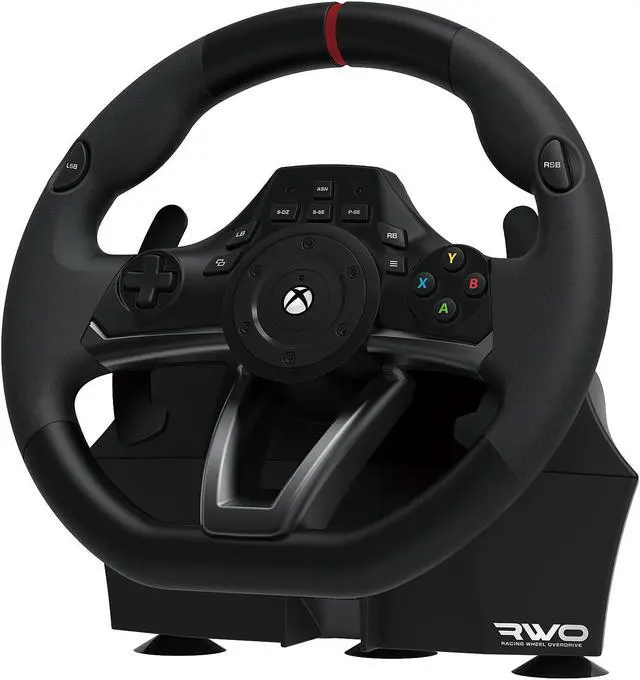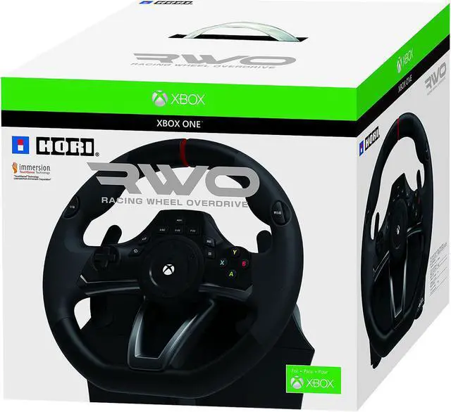 Feature| Feature | HORI brings the best in build-quality, customization options, and authentic racing simulation with the Racing Wheel Overdrive. HORI's Tokyo design team has brought all the features and quality of a full-size racing wheel at an aggressive price. Massive 270 degree turn-ratio - Completely programmable & adjustable - Xbox One compatible. The Racing Wheel Overdrive clamps securely to your table or racing wheel stand with sturdy clamps and steel parts. The full size pedals are built to last. Change from 270 degree to 180 degree turn ratio on the fly and fine tune other settings such as dead zone, pedal sensitivity and more. Get in the race with the all new RWO: Racing Wheel Overdrive for Xbox One. Officially licensed by Microsoft. |