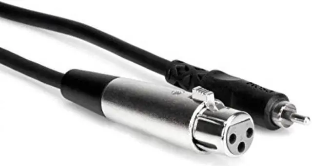 A standard interconnect cable with a 3 Pin XLR female on one end and a RCA Male on the other, with heavy duty cabling.