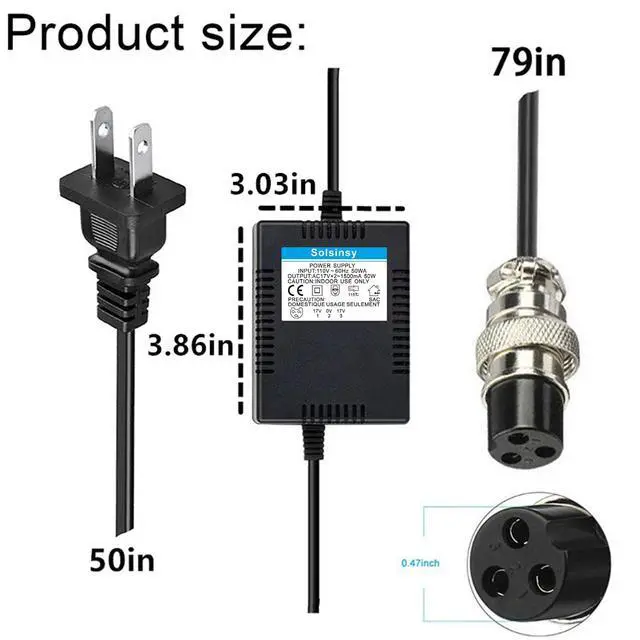 Specifications: Input: 110V, 60Hz 24WA Output: AC17V 600mA 20VA Plug: US Connector: 3-pin Round connector Cable Length: Approx. 2 meters Item Weight: 590g / 1.3lb Package List: 1 * Power Adapter