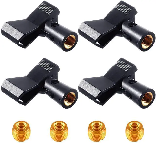 4 Pieces Mic Clips for Stands with 4 Adjustable Adapters Microphone Holder Wireless Mic Holder Clamp with 5/8 Inch Male to 3/8 Inch Female Adapter