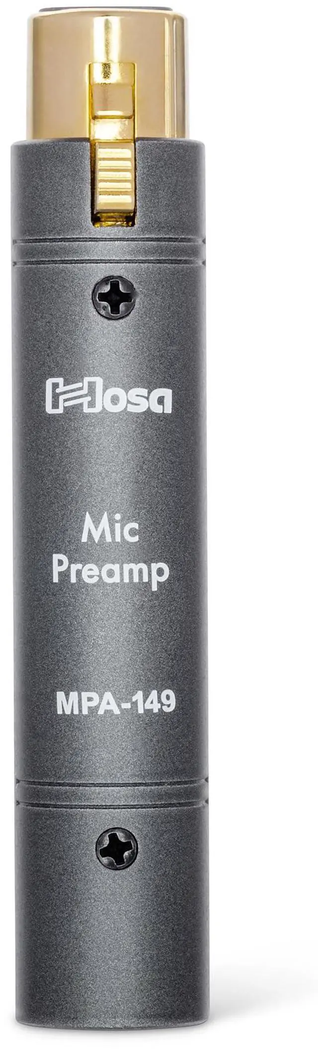 The MPA-149 is an active, in-line mic preamp that provides +26dB of gain to any low-output dynamic, or passive ribbon microphone. The MPA-149 utilizes a discrete Class-A circuit design and selected FET circuitry to offer a clean signal path and low-noise operation. Its compact metal housing is designed to perform reliably in any environment. Where increasing the gain on consoles, interfaces, or other external preamps may introduce more noise, the MPA-149 provides a clean boost to your signal. Ideal for podcasters, streamers, public speakers, and gigging professionals relying on venue preamps. Connecting the MPA-149 is simple, just insert between your microphone and cable into any mixer, console, interface, or external preamp that provides 48V phantom power. The MPA-149 will not pass phantom power through to your passive microphones.