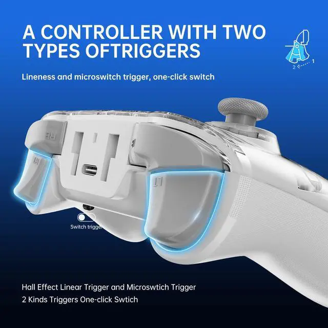 Hall Effect Joysticks&TriggerThe PC controller provide experience ultra-responsive gameplay with a 1000Hz polling rate, easily switch between linear Hall Effect triggers and non-linear tactile triggers for optimal control across Whether shooting or In racing games scenarios to faster response; can help you stay ahead.